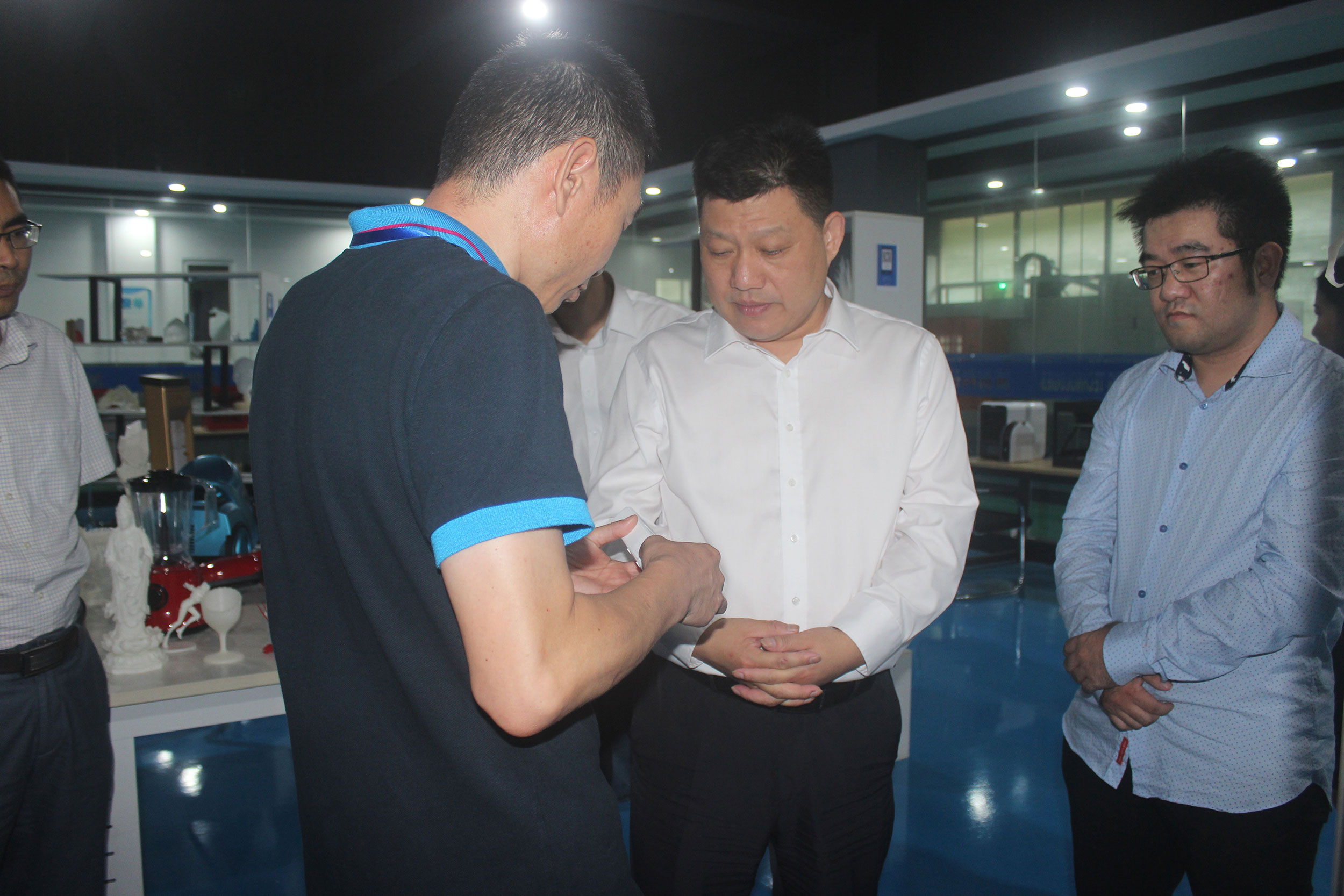 整個參觀過程中,項敏市長對3D打印在制造業領域的應用表示了充分的肯定。3D打印作為一種新型技術,與傳統制造業的緊密結合已經成為一種趨勢,浙創科技利用成熟的SLA技術和自行研發的耗材,深入服務于慈溪及周邊的家電、汽配、醫療等各個產業。