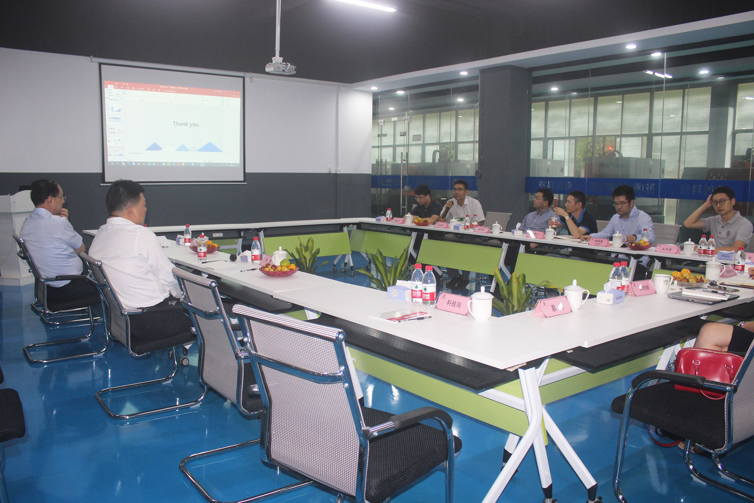 陶總經理講解結束后,由任召輝教授代表浙江大學材料科學與工程學院發言。任教授說道:浙大浙創新材料聯合研發中心從去年合作至今一年多,浙大材料學院主要提供技術支持,并定期現場討論,提出解決方案。目前研發中心主要研發高分子材料,日后會擴展到陶瓷、金屬材料。