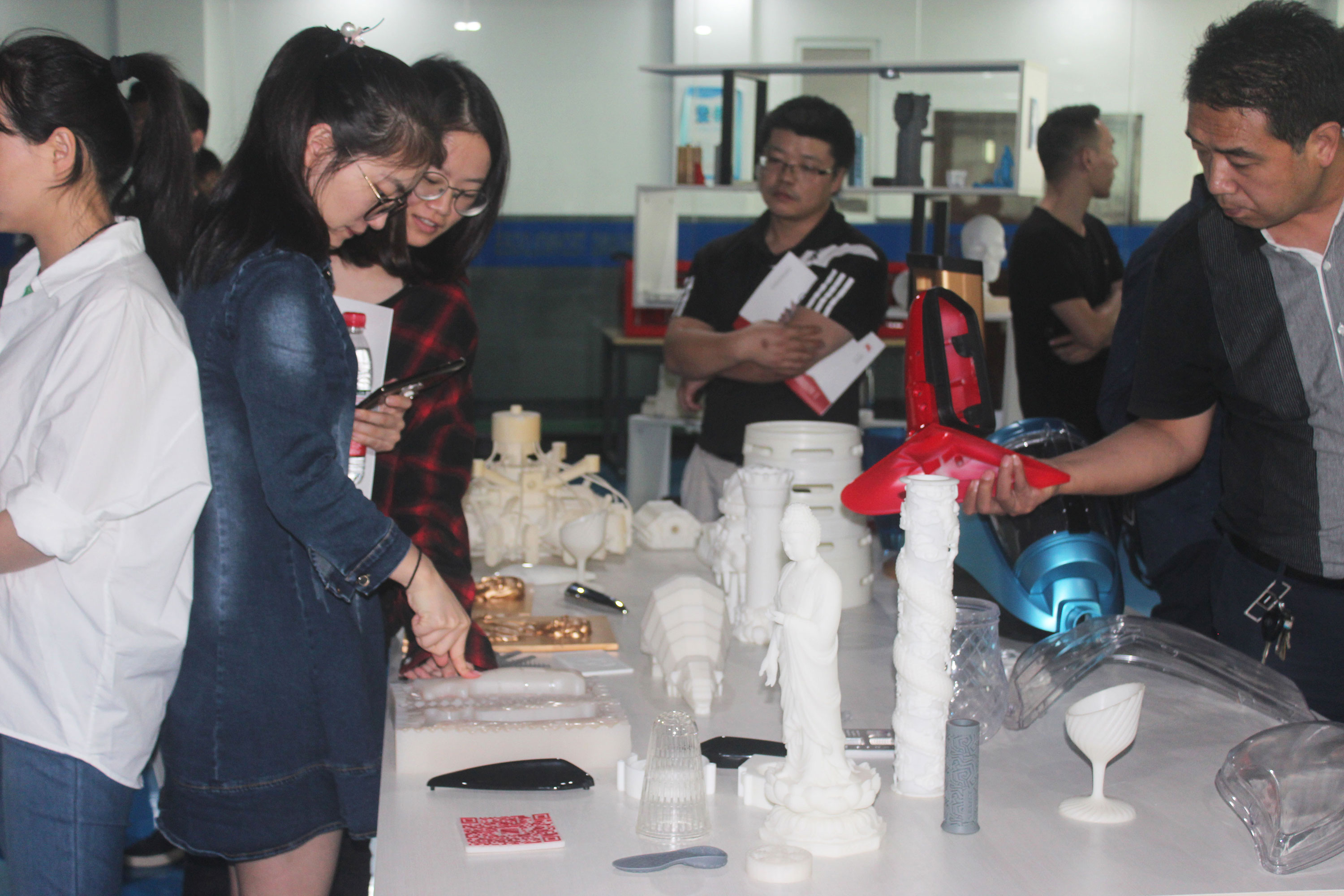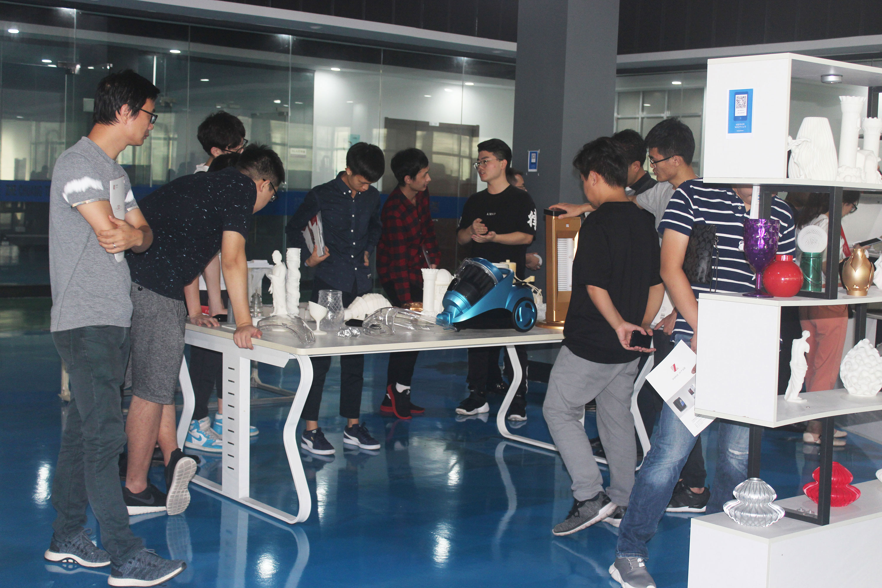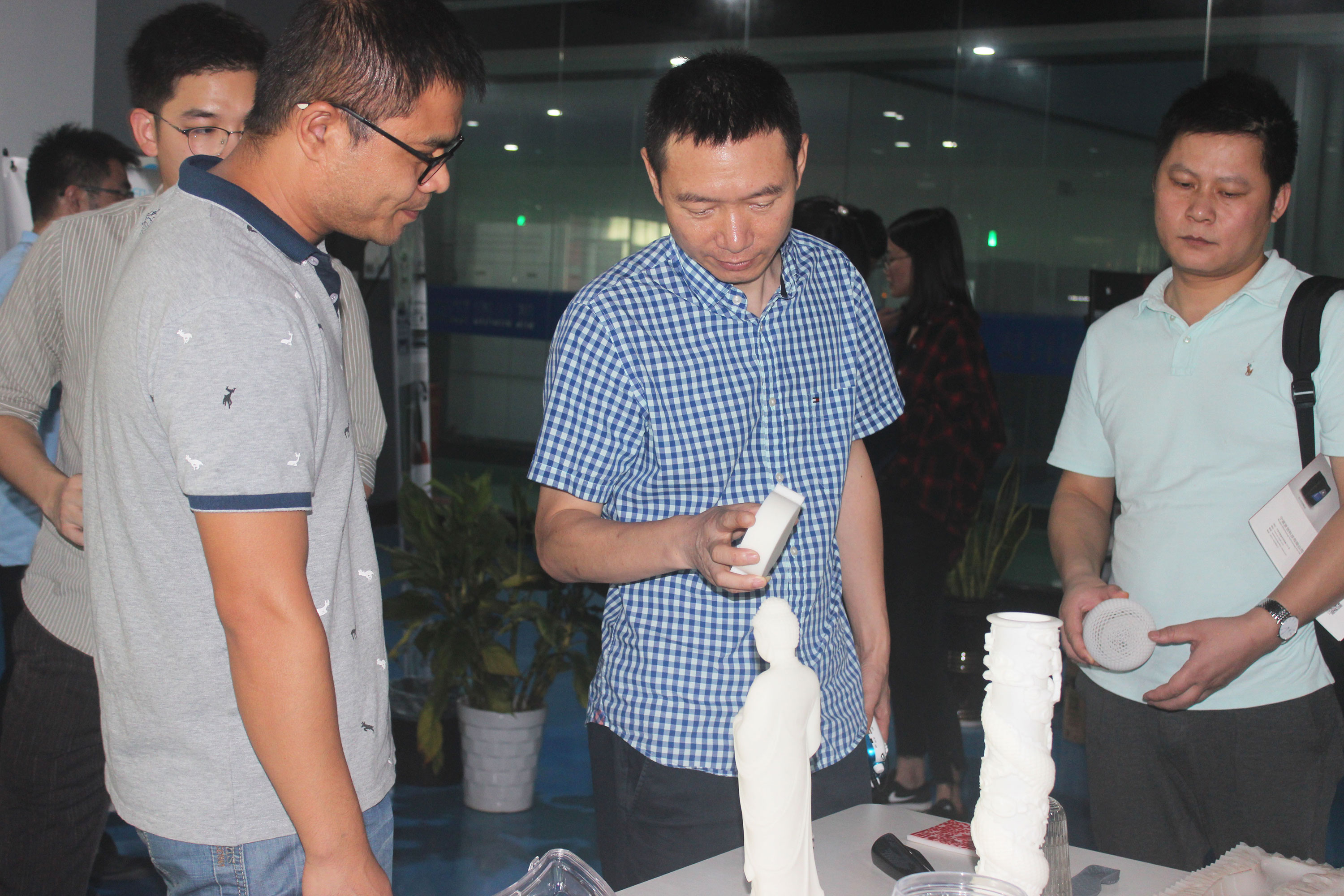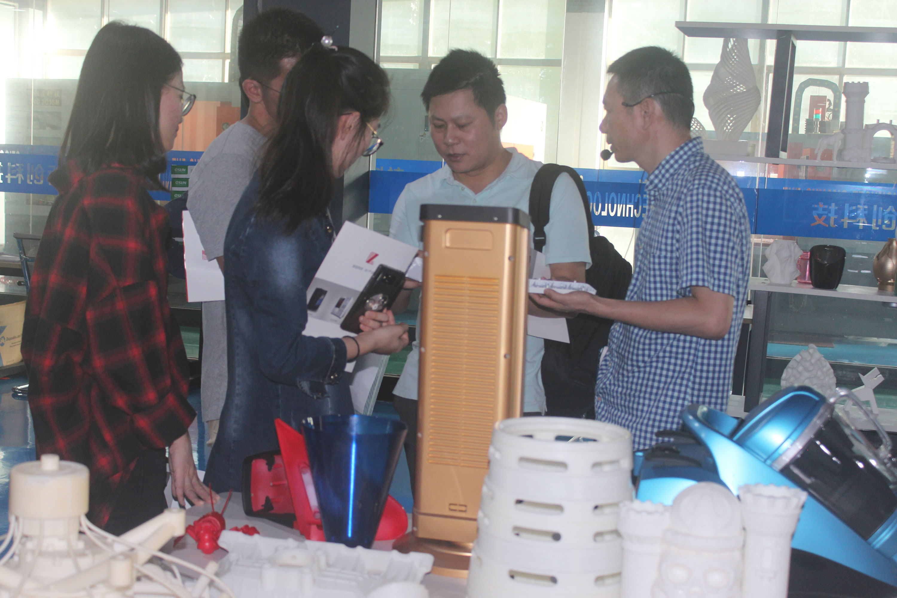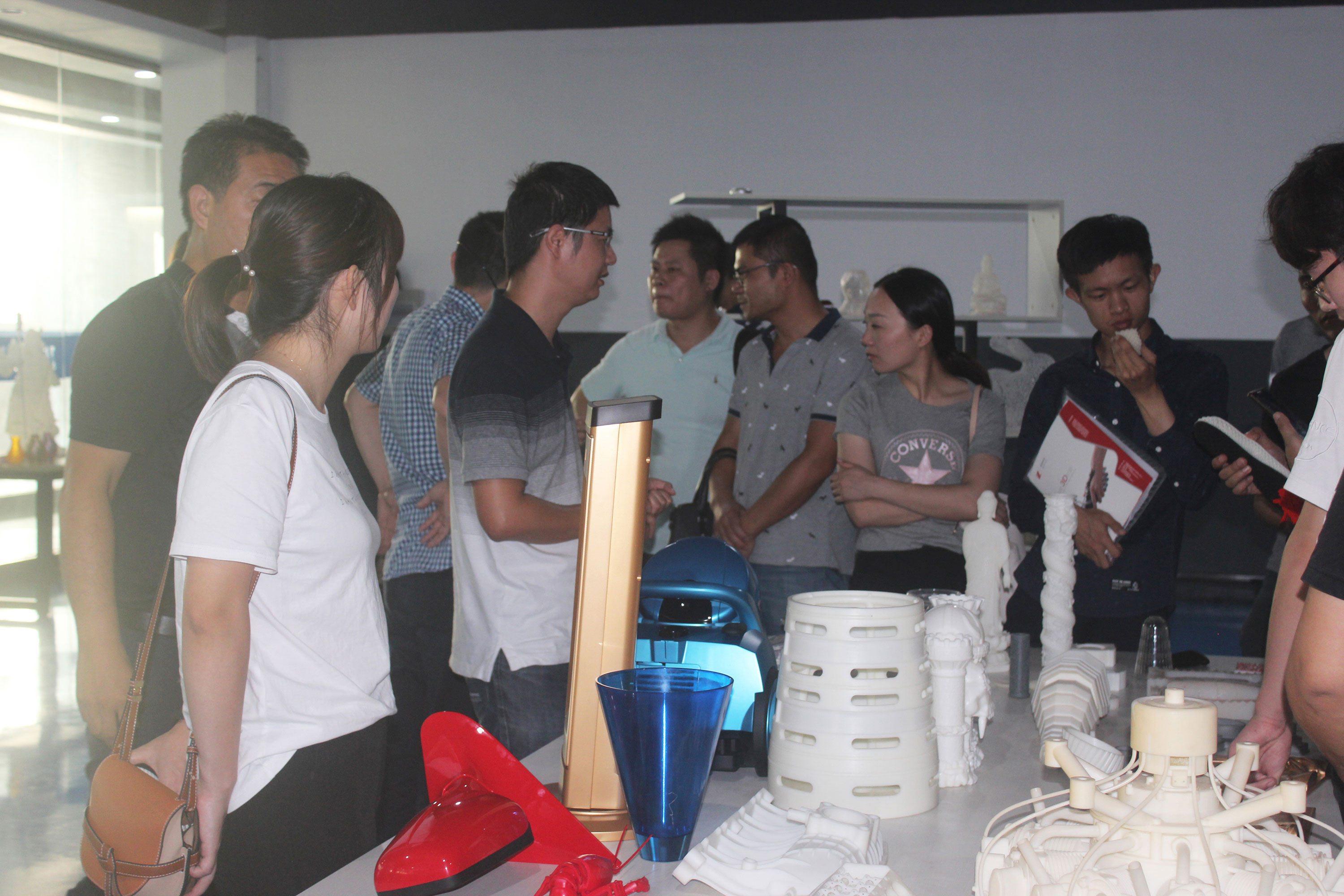 在陶董事長等浙創(chuàng)科技領(lǐng)導(dǎo)的陪同下,來訪嘉賓一行參觀了3D打印車間,詳細(xì)了解了SLA工業(yè)級(jí)3D打印機(jī)打印流程,觀察SLA成型方式。在3D打印樣品間,陶董事長和陶總經(jīng)理向來訪嘉賓展示了3D打印的各種模型,來訪嘉賓對優(yōu)質(zhì)的家電和汽車配件模型表現(xiàn)出了濃厚的興趣,并就模型生成的整個(gè)過程向浙創(chuàng)科技工作人員進(jìn)行了詳細(xì)的詢問。