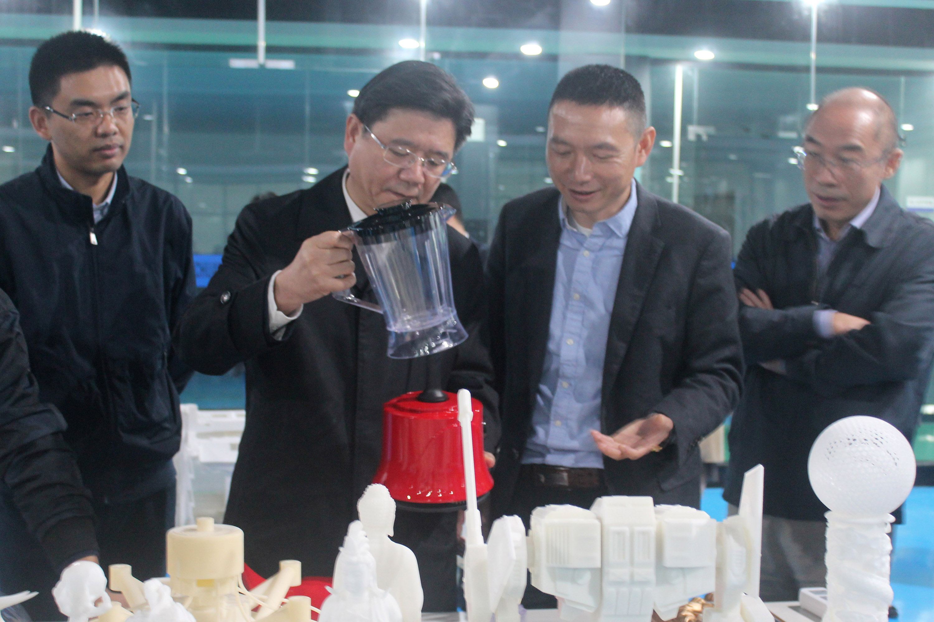 隨后陶董事長帶領(lǐng)陳炳榮副市長一行參觀浙創(chuàng)科技3D打印車間和樣品間,為領(lǐng)導(dǎo)們講解了3D打印機的工作原理以及3D打印技術(shù)在各個行業(yè)的實際應(yīng)用案例。通過3D打印樣品,領(lǐng)導(dǎo)們對3D打印技術(shù)和其應(yīng)用領(lǐng)域有了更深入的理解。