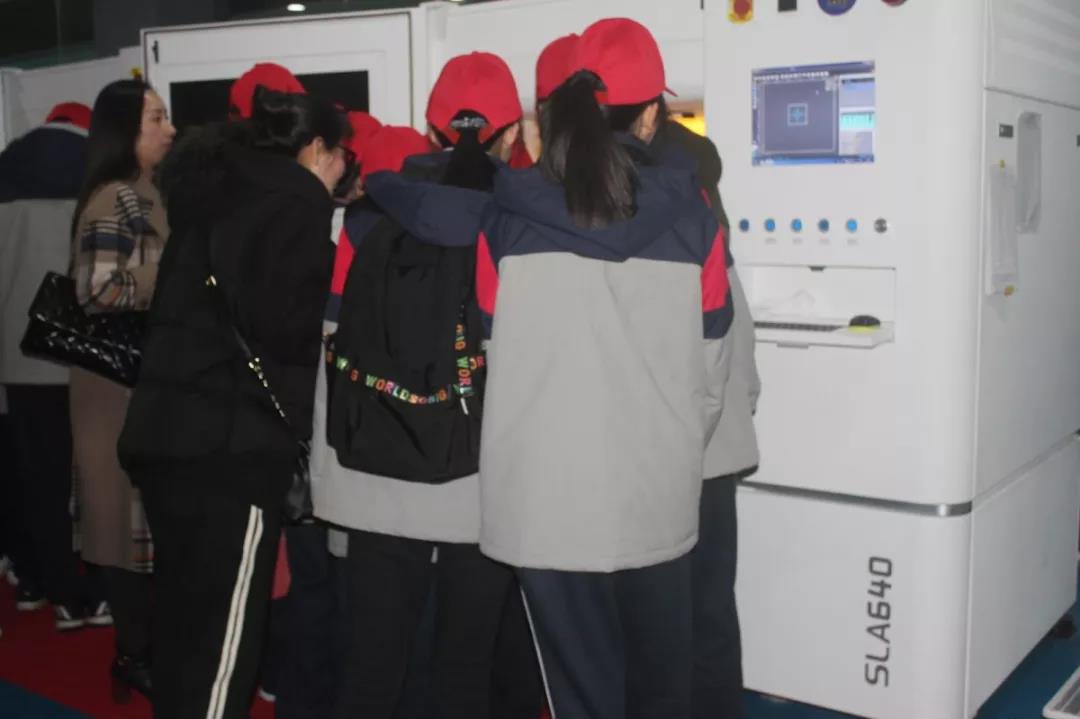 隨后在陶經(jīng)理的帶領(lǐng)下,同學(xué)們參觀了3D打印車間,浙創(chuàng)科技工作人員為大家講解了3D打印機(jī)的工作原理。同學(xué)們通過工作中的SLA 3D打印機(jī)觀察激光下液體光敏樹脂固化成型的過程,更直觀的了解3D打印技術(shù)。與前沿科技的零距離接觸,讓同學(xué)們對(duì)現(xiàn)代科技紛紛贊嘆。