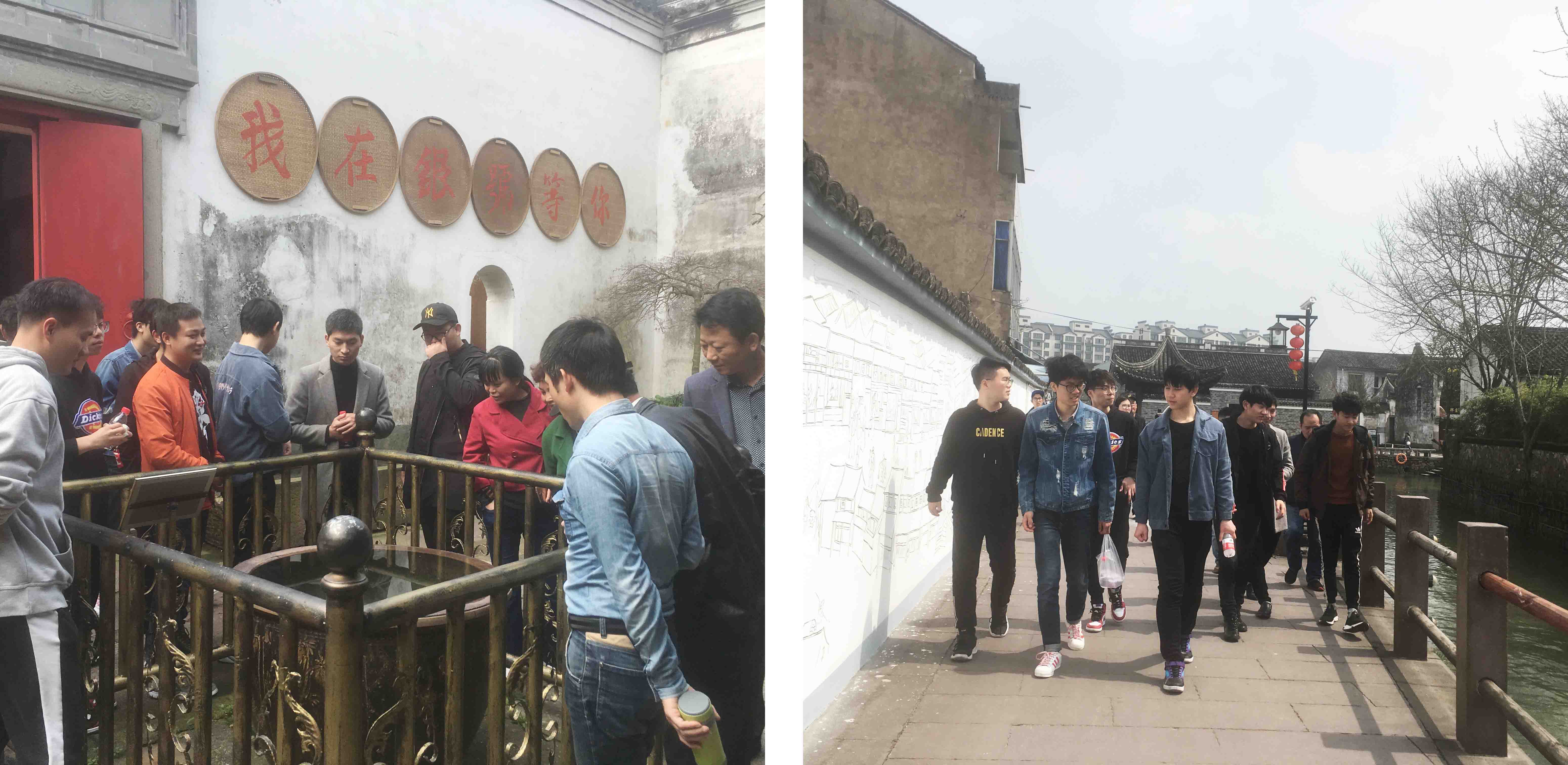 春游首站來到了鳴鶴古鎮,清晨的古鎮還攜帶著一絲涼意,波瀾的湖面反襯著陽光,樹干上綠色的枝條搖擺著,灰色磚瓦似乎訴說著千年的故事。大家沿著小巷徐徐前行,欣賞江南古鎮風景、品嘗江南特色美食、了解鳴鶴國藥文化。